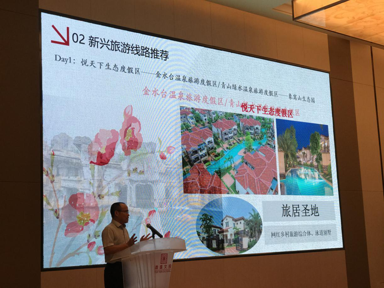 新興縣文化廣電旅游體育局黨組書記局長(zhǎng)戚正旺對(duì)新興旅游資源及線路進(jìn)行推介。