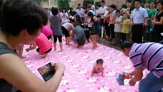 此次活動根據不同的年齡階段分別舉行了爬爬樂、寶寶競走、撿撿樂、快又多等多個游戲項目,讓小寶寶也能參加到幸福家園的社區文化活動中?;顒蝇F場人頭涌涌,歡笑聲、加油聲不斷傳出。