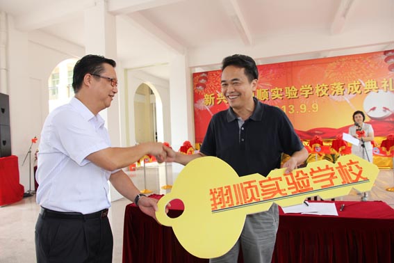 2013年9月9日上午,副總裁鐘世雄代表集團將校舍的金鑰匙正式移交新興縣人民政府。