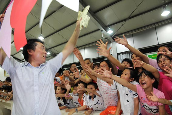“給我一張!給我一張!”猜燈謎現場充滿熱鬧的燈謎爭搶聲。