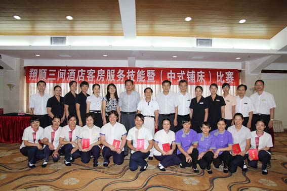 為提升技能比賽的層次,拓寬交流面,內(nèi)部經(jīng)驗(yàn)共享,為顧客營(yíng)造高品質(zhì)的酒店住宿環(huán)境,7月15日,在集團(tuán)工會(huì)的大力支持下,三家酒店在翔順花園酒店七樓會(huì)議室內(nèi)聯(lián)合舉辦了一場(chǎng)激烈的中式鋪床服務(wù)技能比賽,經(jīng)過三家酒店內(nèi)部競(jìng)技挑選出來的12名選手參加了比賽。