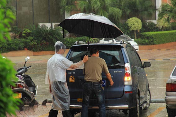 5月的大部分時間都在下雨。透過淅淅瀝瀝的雨線,映入我視野的是那撐著大雨傘為我們遮風擋雨的保安。