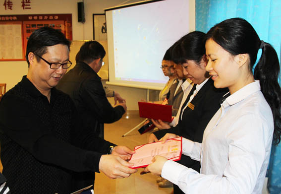 會上,集團副總裁鐘世雄和編輯部總編梁偉雄分別為獲得金筆獎的六名員工王旭東、周華秀、梁章開、陳妍、江春梅、梁莉施頒發證書、獎金和獎品。