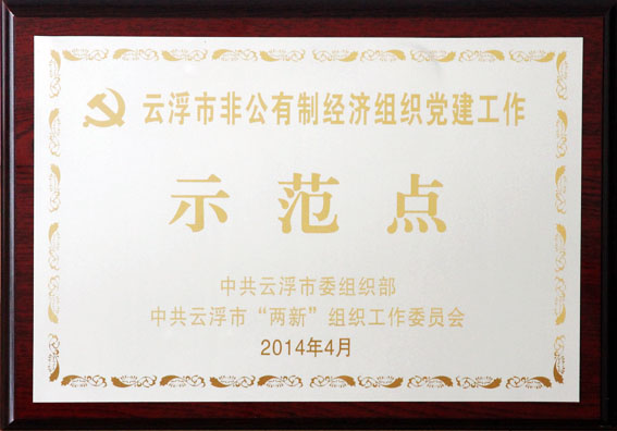 近日,集團黨總支獲得了上級部門的肯定,被市委宣傳部、市“兩新”組織工作委員會授予“云浮市非公有制經濟組織黨建工作示范點”稱號。