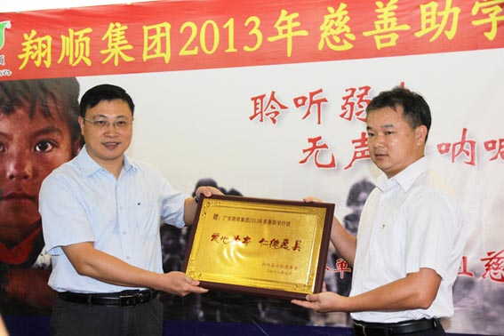 7月11日上午,由縣六祖慈善會(huì)、團(tuán)縣委、縣婦女聯(lián)合會(huì)、縣民政局、縣教育局聯(lián)合舉辦的新興縣“2013年慈善助學(xué)行動(dòng)”啟動(dòng)儀式在翔順花園酒店會(huì)議廳盛大舉行,由翔順集團(tuán)捐助30萬元資助500名貧困家庭學(xué)童,幫助他們圓上學(xué)夢(mèng),得到資助的孩子們臉上露出了淳樸的笑容。