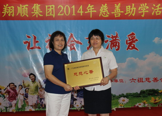 陳敏在發言中希望貧困學生不要辜負熱心人士的愛心和厚望,一定要把學習作為首要任務,珍惜大好時光,發奮學習,用豐富的科學理論和文化知識武裝自己、充實自己、陶冶自己,打牢人生成長進步的根基。陳敏還向翔順集團贈送“慈悲心香”牌匾,集團總裁夫人蘇洪有代表翔順接受牌匾。