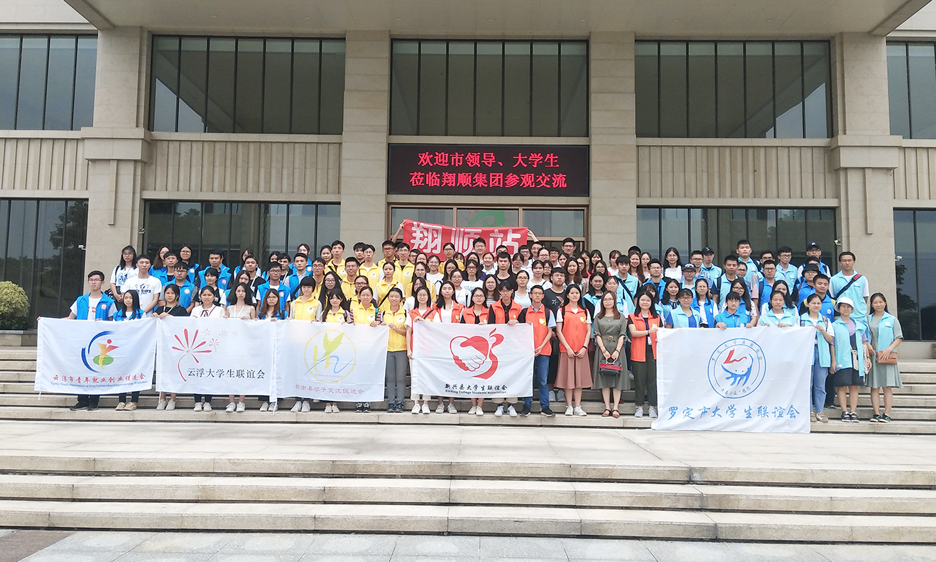 天上午11點(diǎn),各市縣共計(jì)130余名大學(xué)生,郁南縣人社局、云城區(qū)區(qū)直計(jì)劃系統(tǒng)、人社局等部門代表,20余名來(lái)自云浮市的相關(guān)企業(yè)代表一同走進(jìn)翔順集團(tuán),開啟新興站參觀之旅。
