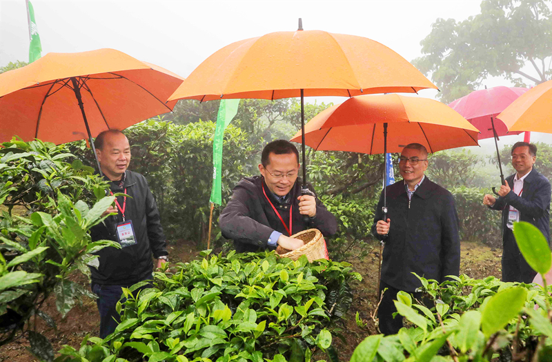 開幕式結束后,與會領導及嘉賓移步到廣東最美茶園之一的象窩山生態園體驗采茶。