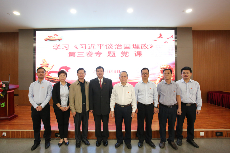 黨課邀請了佛山科學技術學院黨委書記曾崢教授作主題為“把握兩個大局,增強憂患意識——學習《習近平談治國理政》第三卷”授課。曾教授用大家通俗易懂的語言生動地講述了黨的十九大以來習近平總書記領導全黨全國各族人民攻堅克難、砥礪前行的偉大實踐,深刻闡述了《習近平談治國理政》第三卷是學習習近平新時代中國特色社會主義思想最權威、最系統、最鮮活的原著原典,全面解讀了習近平總書記治理國家的新理念、新思路、新戰略。
