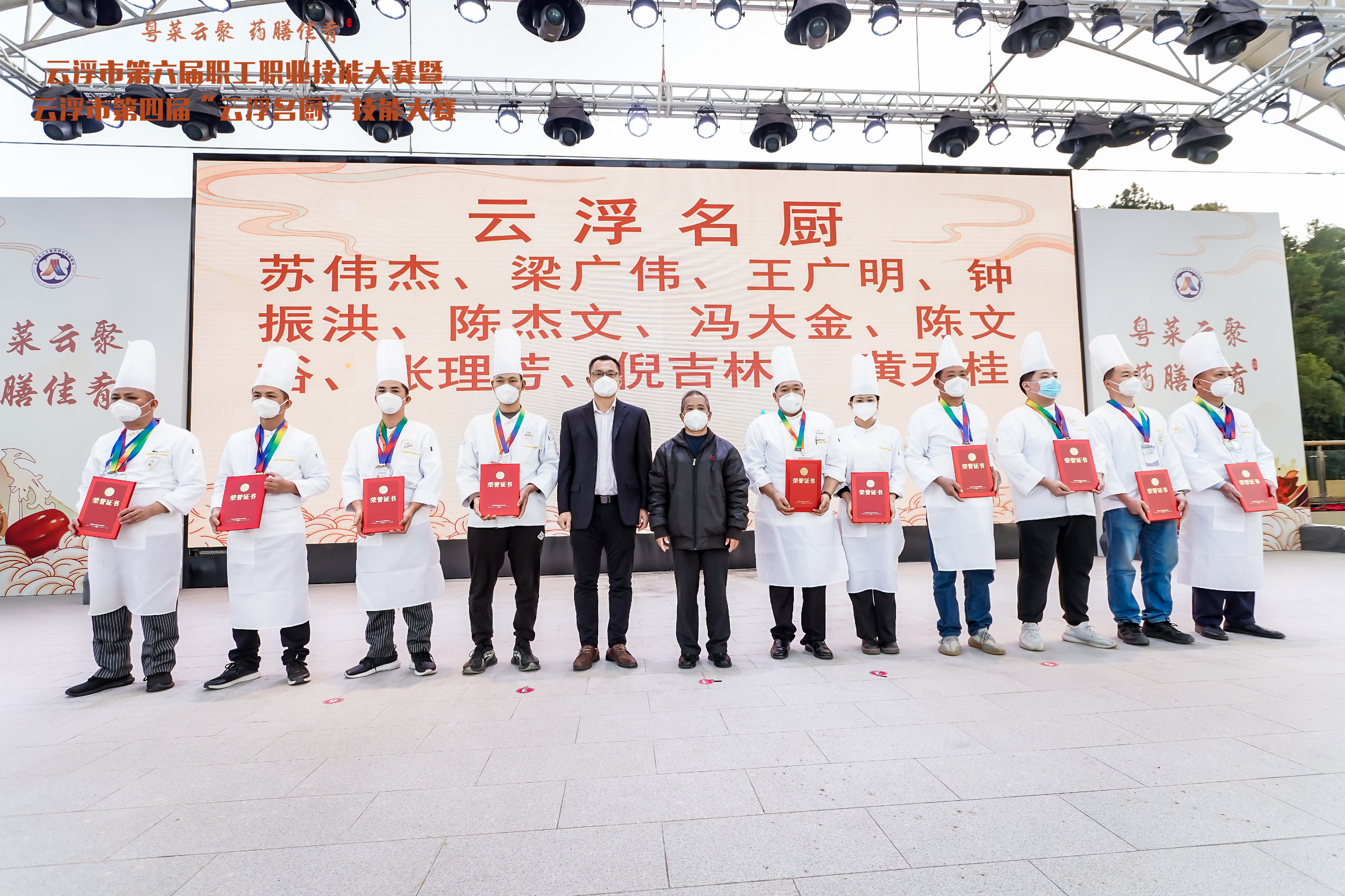 經過一天激烈的角逐,翔順文旅在此次比賽中表現出色,其中來自翔順金水臺的蘇偉杰和陳杰文獲得“云浮名廚”稱號;蘇偉杰在中式面點名廚組和中式面點名廚組預制菜評比中均斬獲一等獎,獲得“雙料冠軍”。接下來,翔順金水臺將以打造特色美食為抓手,深化構建“粵菜師傅+旅游+美食”的發展模式,在推動翔順金水臺餐飲、建設高質量發展的金水臺溫泉小鎮新征程中貢獻力量。