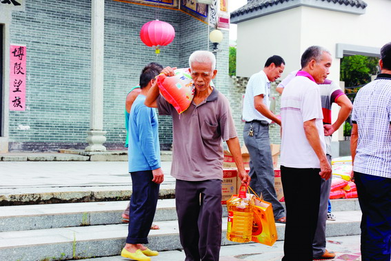 而在壩塘村,慰問活動同樣感人摯真,崔氏宗祠和太乙公宗祠門前一派歡聲笑語、其樂融融,一箱箱花生油、一袋袋大米,還有那包裝精美的翔順月餅一字排開,蔚為壯觀。壩塘村21名五保老人均領取到了翔順集團的節日禮品。看到老人們喜笑顏開,慰問組的領導倍感欣慰。