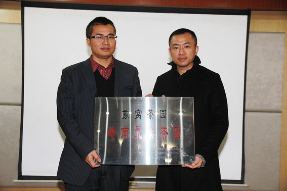 頒獎儀式上,集團副總裁鐘世雄致辭,象窩茶業公司總經理崔少強接受“嶺南最美茶園”榮譽牌匾。鐘總表示,象窩茶業公司將用好該項榮譽招牌,進一步做好象窩茶園建設,助力新興生態旅游發展。