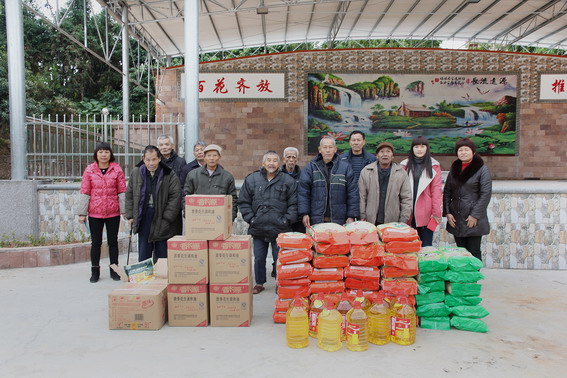 1月26日,集團行政總經理陳錦嫦及總裁夫人蘇洪有一行分別來到稔村鎮敬老院及壩塘村,為敬老院30余名老人以及壩塘村19名五保老人送上了總計近20000元的慰問金和慰問品,還特邀縣知名書法家為壩塘村村民現場揮毫,贈送春聯。