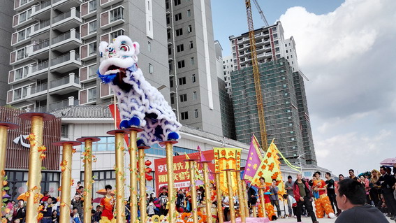 大年初五(2月12號),翔順房地產公司特邀佛山少年黃飛鴻醒獅隊到筠州二區銷售中心門前廣場,為大家獻上了一場精彩紛呈的醒獅賀歲表演,八張凳、梅花樁、高桿等精彩絕倫表演讓現場千余名觀眾一飽眼福,大家情不自禁地發出陣陣喝彩聲,并贈予熱烈的掌聲。現場,不少客戶紛紛拿出手機競相拍照,并上傳朋友圈,場面異常火爆。