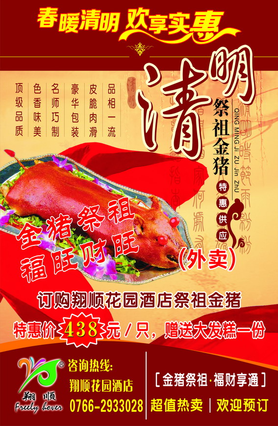 翔順花園酒店制作乳豬選用新鮮豬,每頭豬的重量控制在10斤左右,燒出來約6-7斤,用新鮮豬燒制出來的祭祖金豬,皮質金黃酥化,肉質彈性好,口感香脆鮮滑,包裝精美、大方體面。