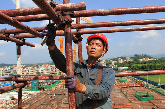 一天上午,烈日之下,記者來到了翔順品園項目的在建樓面,只見數(shù)十名工人正忙得不可開交,澆水泥、扎鋼筋、釘模板、搭排柵,雖然太陽曬得皮膚發(fā)燙,可他們照樣秩序井然地忙碌著。他們的衣服、褲子都已被汗水滲透了,可黝黑的臉龐卻始終掛著笑容。我沒法一一叫出他們的名字,但小小的安全帽下的臉龐,卻讓我印象十分深刻。