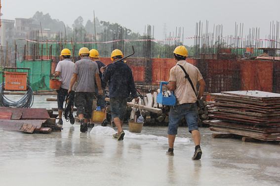 8月18日上午,一場陣雨如期而至,記者在品園項目工地卻出乎意料地看到所有員工都干得熱火朝天。在蒙蒙細雨中,樓面上一片忙碌。澆水泥、據(jù)模板、檢查橫梁、釘模板,沒有一個人閑著。“下雨干活符合要求嗎?影響工作嗎?”記者納悶,“符合要求的,而且不是大雨一般不影響工作。”翔順品園項目經(jīng)理張先亮表示,大家白天工作基本上都會被汗水打濕衣服,所以下小雨不但不影響工作,反而更涼快些。