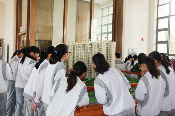 實中社師生在集團有關人員的帶領下,先后參觀了集團大堂的縣城沙盤、翔順品園及翔順鳳凰廣場樓盤模型、集團文化展廳等。諄諄學子們所到之處,認真聽取了集團工作人員的介紹,并詳細記錄翔順集團的文化亮點。