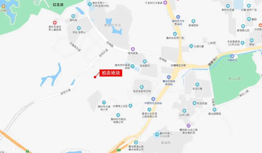 該宗地塊位于仲愷區(qū)惠環(huán)街道,處于金愷大道與仲愷大道中間,周邊還覆蓋有金榜路、長深高速等交通要道,近紅花湖景區(qū)、南山公園、惠州市汽車客運(yùn)站等生活配套,地理位置優(yōu)越。