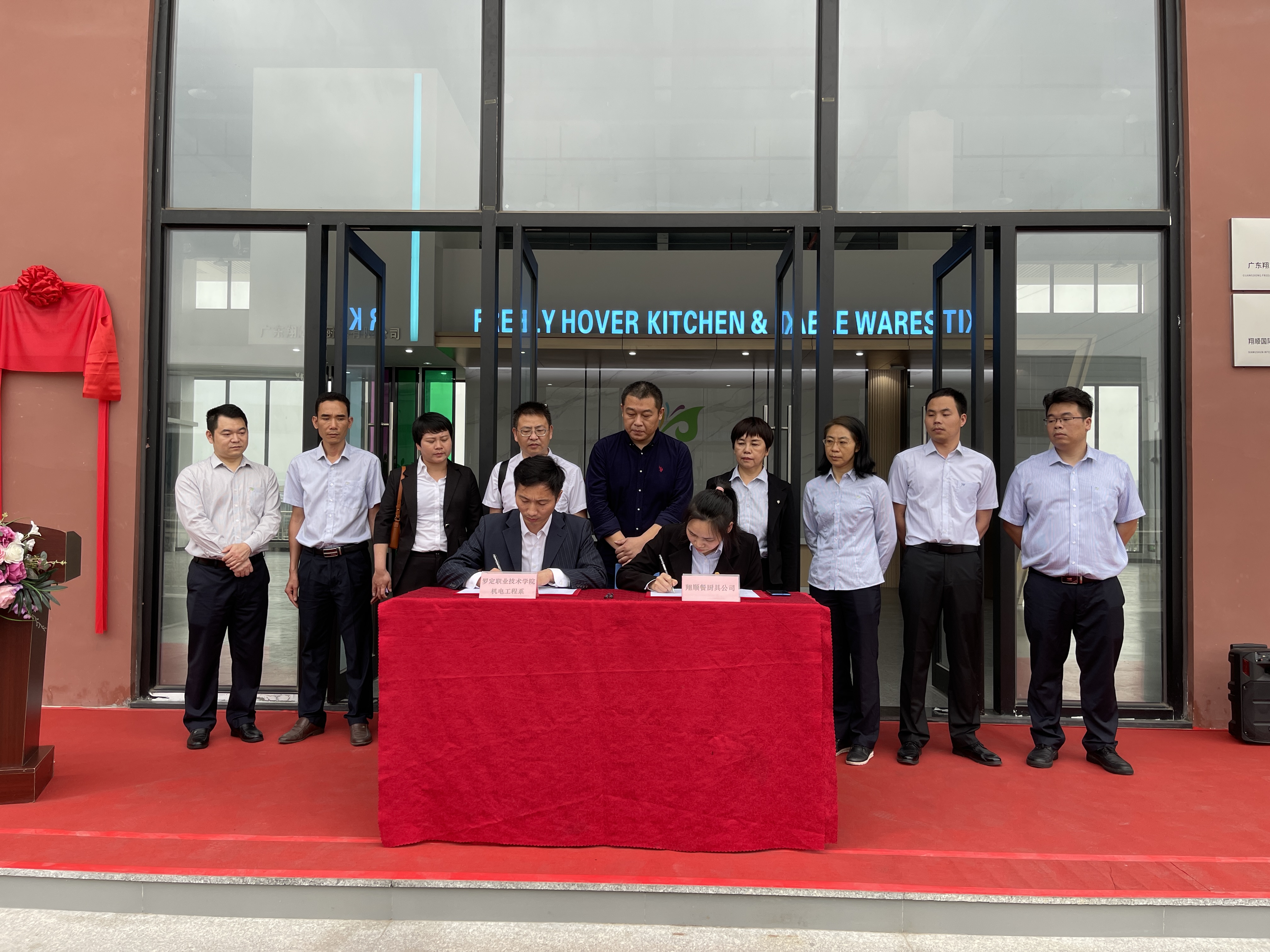 校企雙方在翔順餐廚具公司辦公樓門前舉行了簡單而隆重的簽約與揭牌儀式。